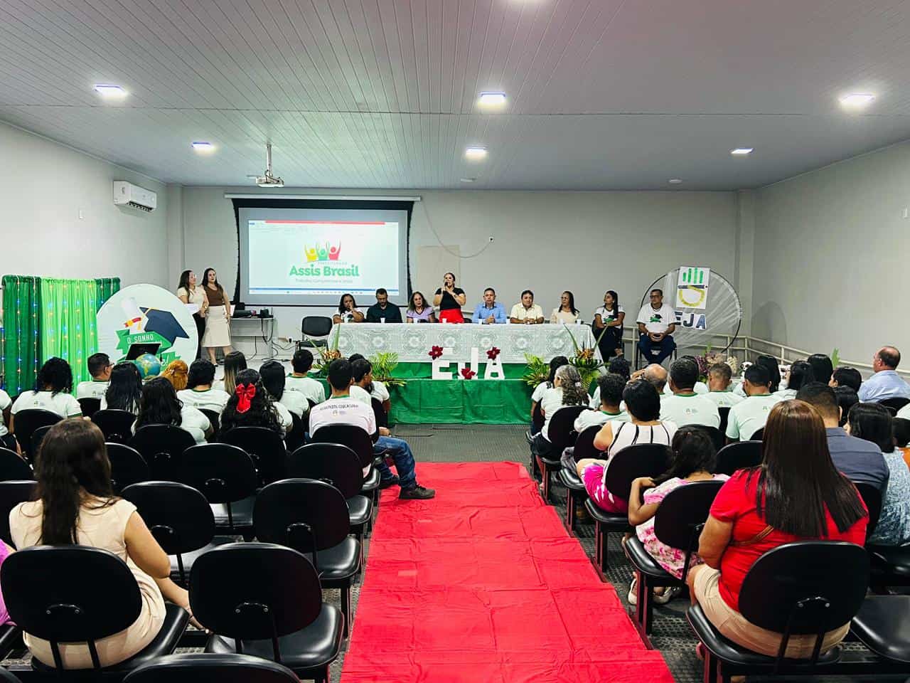 O prefeito de Assis Brasil, Jerry Correia, participou na noite desta segunda-feira (15) da cerimônia de formatura de três turmas do Programa de Educação de Jovens e Adultos (EJA). O evento foi realizado no auditório da Escola Íris Célia e marcou a conclusão de uma importante etapa educacional para dezenas de alunos do município.