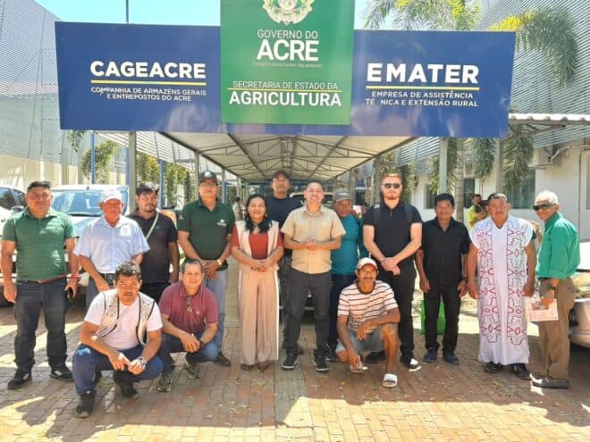 O grupo esteve reunido na Secretaria de Agricultura (SEAGRI), onde discutiu o incentivo à produção agrícola dentro da Reserva Chico Mendes e nas Terras Indígenas. As comunidades expressaram o desejo de ampliar suas atividades produtivas, reforçando a necessidade de apoio não só da Prefeitura de Assis Brasil, mas também do Governo do Estado, da Fundação Nacional do Índio (FUNAI) e de outras instituições.