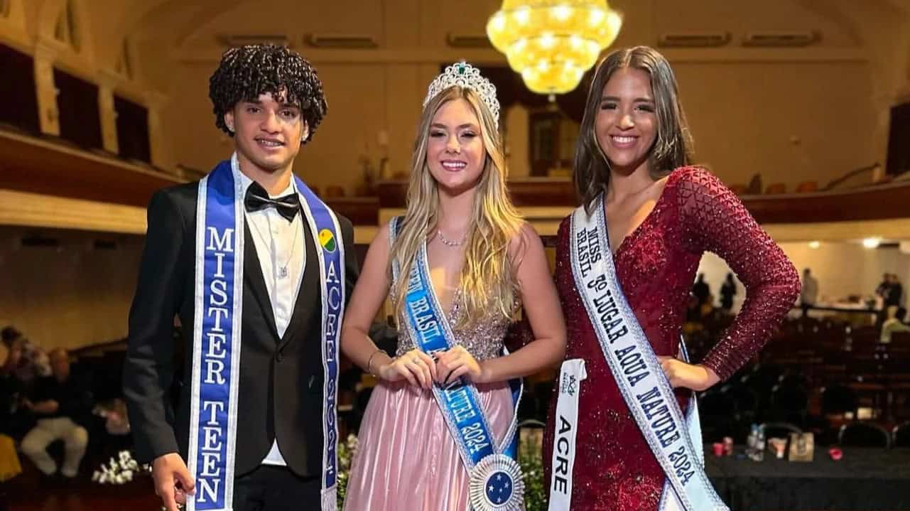 Mister Teen Acre, Nelson Eduardo; Miss Teen Brasil, Hellen Dutra; e a 3ª colocada no Miss Aqua Nature 2024, Juliana Miranda. Foto: Divulgação