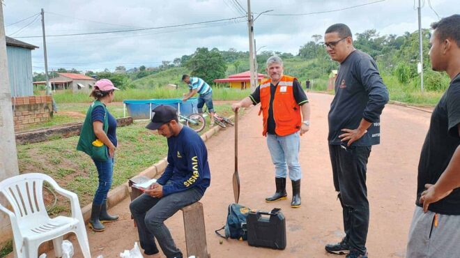 O prefeito Sérgio Lopes visitou algumas casas que ficaram isoladas com a cheia do rio Acre, na medida que o nível vai se elevando mais famílias necessitam de apoio por parte da prefeitura.