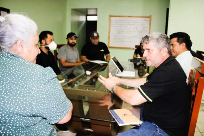 O Prefeito estava acompanhado do Secretário de Cultura e Esportes, Joãozinho Ferreira, do Diretor de Esporte, Raimundo Gondim, da Diretora Administrativa, Liane Rocha, e dos representantes do Grupo Unibike Roberto Abreu, Presidente, Clebson Venâncio, Diretor Esportivo, e David Romão, Conselheiro, na reunião com a Alcaldeza de Cobija, Ana Lucia Reis.