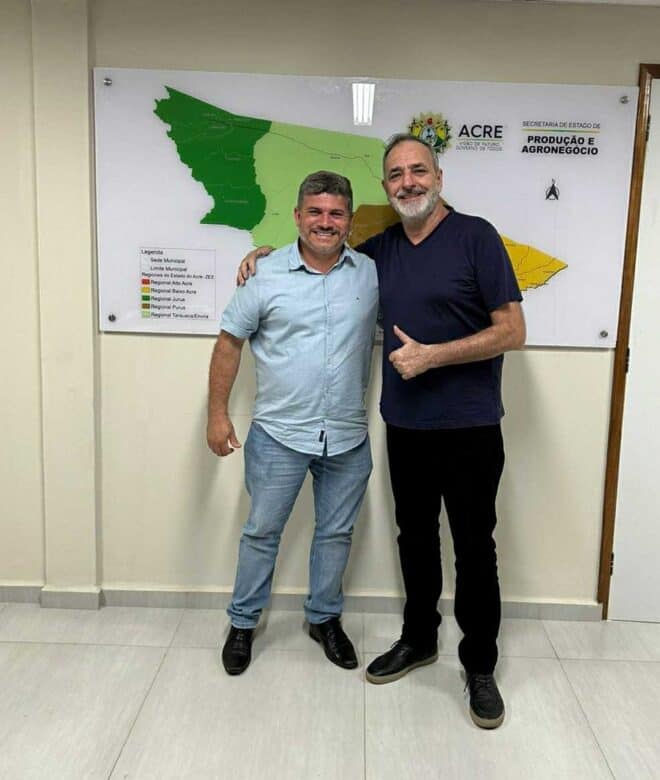 Nesta quinta-feira dia (19), o prefeito Sergio Lopes se reuniu com o secretário de estado de produção, José Luis Tchê, para tratar das parcerias entre a secretaria de produção e o Município de Epitaciolândia.