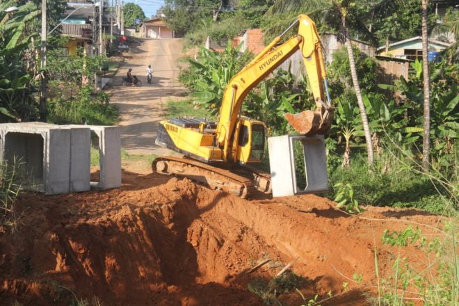 A estrutura que está sendo montada é a primeira de grande porte dentro de um bairro no Município de Epitaciolândia, a estrutura irá suportar a grande quantidade de água durante os períodos de chuva.