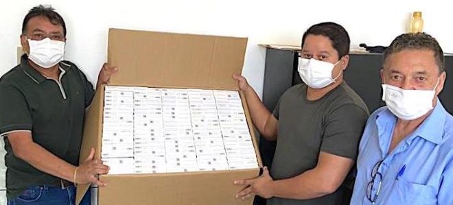 O secretario municipal de saúde, Saimon Felipe, recebeu o Prefeito juntamente com vereadores, Nêgo, Diogenes e o secretário de administração, José Menezes ‘Paraguassu’, para a entrega dos Kits de teste rápido para Covid-19, da marca NUTRIEX.