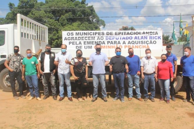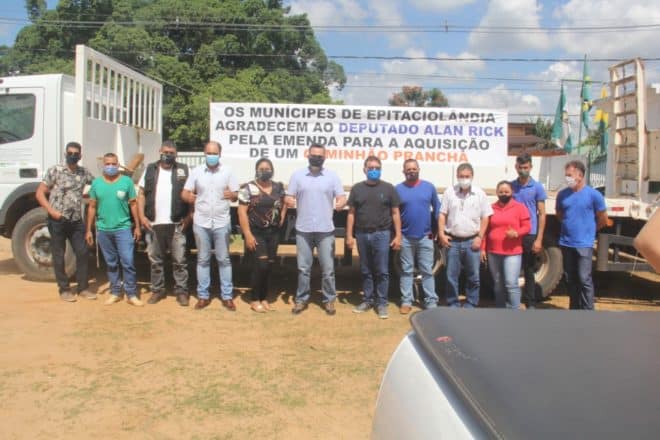 Na presença do Prefeito Tião Flores e o Secretário José Menezes, o excelentíssimo deputado Alan Rick oficializou a entrega do caminhão prancha ao município de Epitaciolândiacomentou que, ‘’…nos entregamos este caminhão prancha que ajuda muito o Município no transporte das maquinas para fazer o melhoramento dos ramais’’. O mesmo também parabenizou a todo os munícipes que serão beneficiados com esta aquisição.