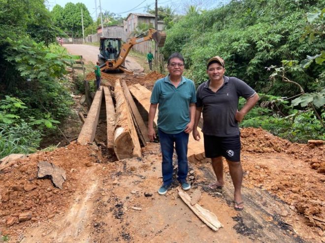 O prefeito Tião Flores na tarde de quinta-feira, 20, esteve acompanhando o inicio da obra de construção da Ponte que liga o bairro José Inácio de Mesquita ao bairro José Hassem, mais conhecida como a ponte da Lubri Pneus. Com esse trabalho, o tráfego de veículos e transeuntes será normalizado e evita que muitos dêem uma volta pela Avenida Internacional ou Fontinele de Castro.