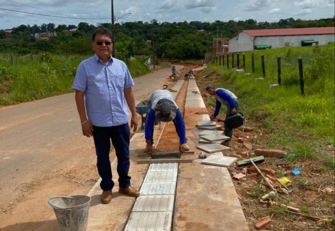 O prefeito de Epitaciolândia, Tião Flores acompanhando da engenheira da prefeitura, vistoriou na manhã desta terça-feira, 21, a obra da construção de calçadas que está sendo executada na Rua Fontinele de Castro no trecho que vai da Mangueira até a Escola Estadual Belo Porvir.