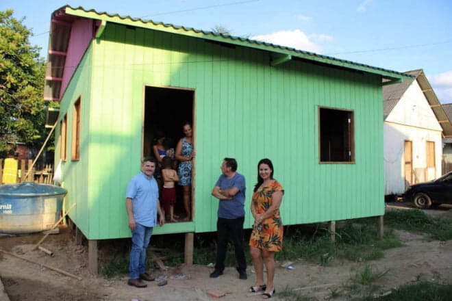 A prefeitura de Epitaciolândia construiu uma casa em madeira para uma mãe de sete filhos que estavam em situação de vulnerabilidade social.