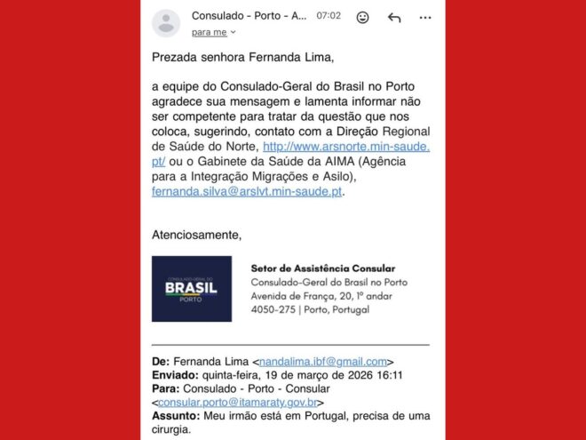 No entanto, a família nega que tenha recebido assistência diante da tentativa de trazê-lo. Em resposta a um e-mail enviado pela irmã Fernanda Lima Queiroz em 19 de março, o Consulado do Brasil no Porto disse que não é competente para tratar da questão. “Apenas uma advogada do consulado que ligou para enviarmos um e-mail ao Hospital São João e gerar provas”, complementou.