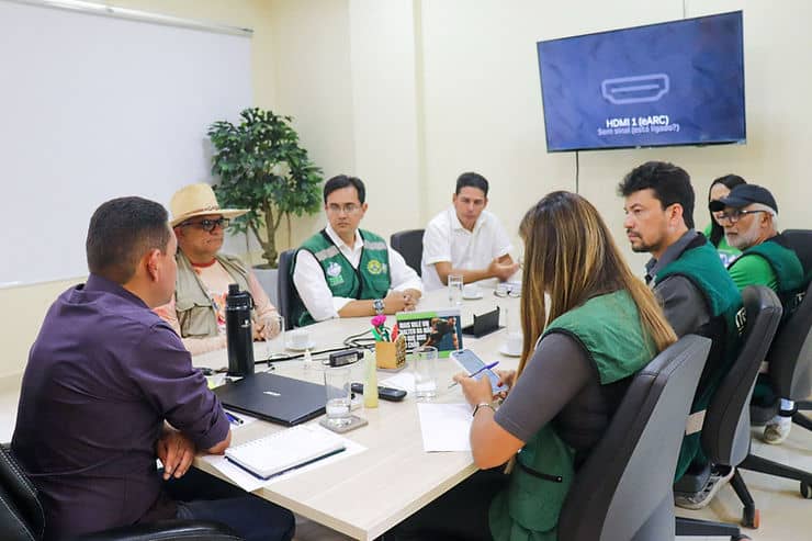 O prefeito Jerry Correia recebeu em seu gabinete a secretária Gabriela Câmara, do Instituto de Terras do Acre (Iteracre), junto com sua equipe técnica. Foto: cedida