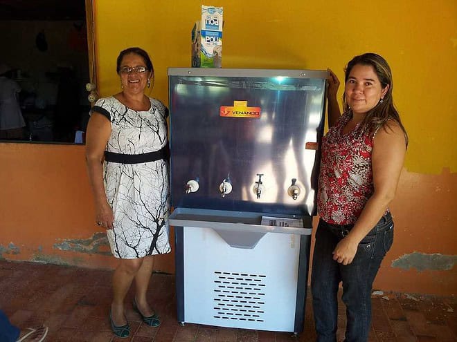 Bebedouro industrial foi instalado em escola onde alunos bebiam em balde - Foto: Assessoria