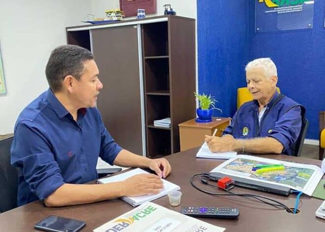 Poucas horas após desembarcar de Brasília, onde cumpria agenda na Marcha dos Prefeitos que encerrou ontem, ao pisar em Rio Branco o prefeito Jerry Correia (Sem Partido), reuniu-se nesta sexta-feira 31, com Sócrates José Guimarães, presidente interino do Departamento de Estradas de Rodagem, Infraestrutura Hidroviária e Aeroportuária do Acre (Deracre), com objetivo de reforçar as parcerias existentes entre governo e prefeitura.