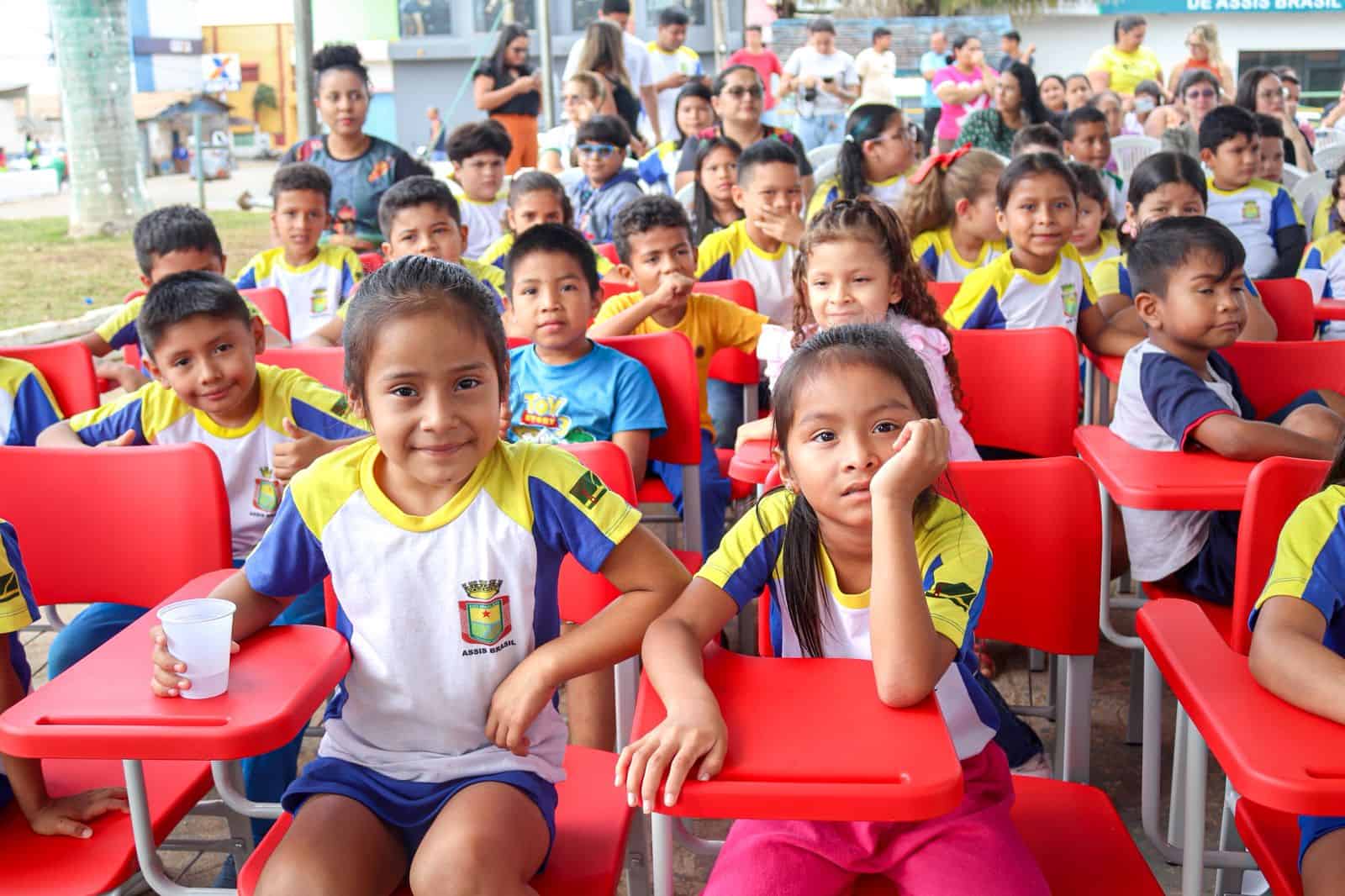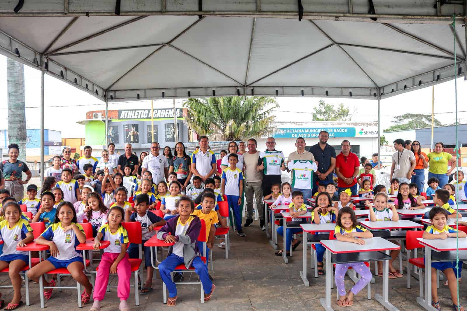 Dentro da programação da Semana da Pátria, a Prefeitura de Assis Brasil, por meio da Secretaria Municipal de Educação, realizou um importante momento voltado para a valorização da educação no município. Nesta ocasião, foram entregues novos fardamentos escolares e cadeiras às escolas municipais, fruto de investimento destinado pelo deputado Afonso Fernandes.