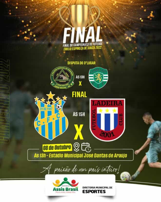 O evento começa a partir das 13:00h no estádio José Dantas. O pública vai assistir também a definição do 3º lugar do campeonato que será disputado entre as equipes do Fronteira e Company.