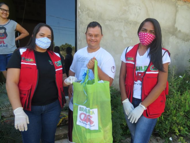 Para entregar o material nas residências, a equipe seguiu todos os cuidados preventivos como: o uso de máscaras e evitando entra nas casas dos moradores.