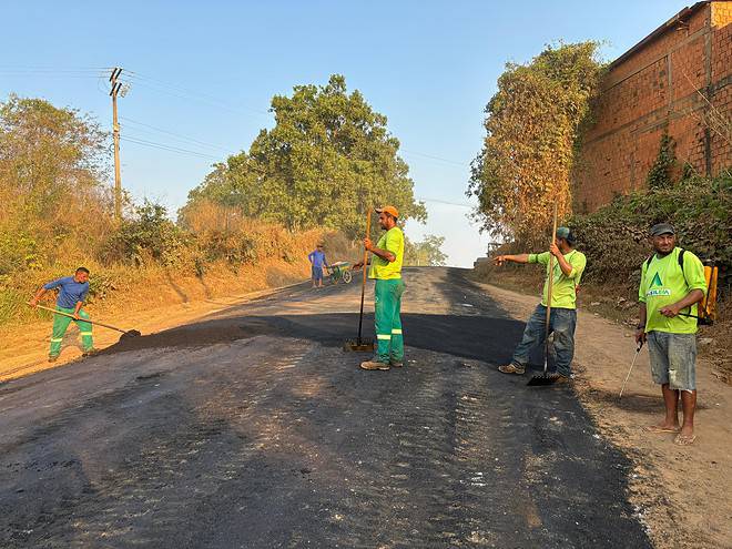 Acesso ao Bairro Marcos Galvão recebe camada asfáltica.