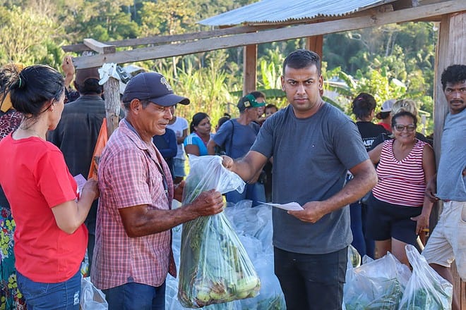 A ação distribuiu 80 kits contendo frutas, verduras e legumes frescos, além de 80 cestas básicas. O PAA visa garantir a segurança alimentar e nutricional, promovendo o acesso a alimentos saudáveis e estimulando a produção da agricultura familiar.