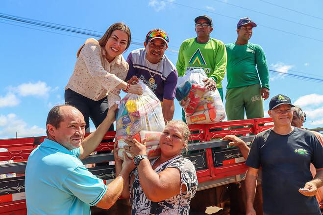 Dando continuidade as entregas das cestas básicas, nesta segunda-feira 25, foi a vez dos moradores do Bairro Nazaré serem contemplados com a entrega de 450 cestas básicas.