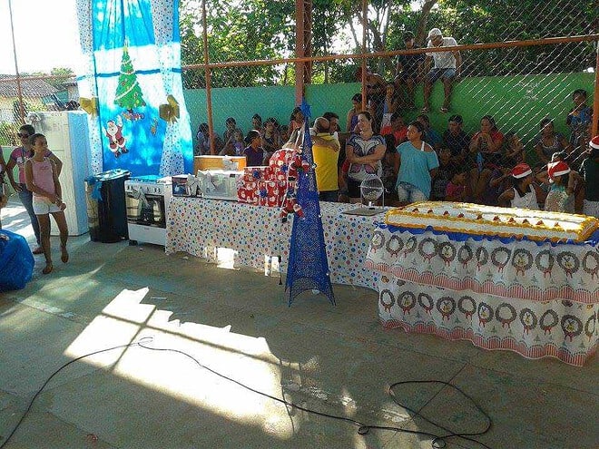 Para animar até mesmo os pais das crianças, foram colocados ventiladores, tanques de lavar roupa, fogão, geladeira e outros objetos para serem sorteados e jogados no bingo, com distribuição de cartelas gratuitas. Até um bolo gigante foi feito para parabenizar as famílias da região por um natal e final de ano feliz.