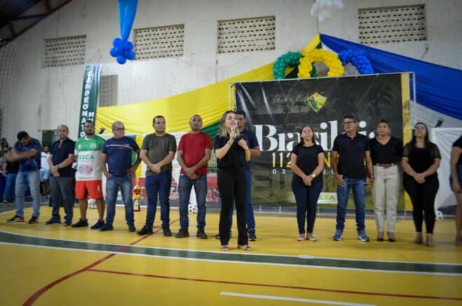 A prefeita Fernanda Hassem fala da realização do tradicional campeonato de futsal. “Eu quero agradecer a Deus, o campeonato de futsal é um sucesso porque as pessoas acreditam no no esporte de Brasiléia, as famílias estão presentes, serão quase 60 dias de campeonato e faz parte da programação de 112 anos de Brasiléia. Estou muito feliz com a participação de todos”, disse.