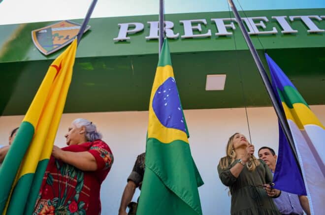 Na solenidade, Fernanda Hassem destacou o momento cívico alusivo ao aniversário de Brasiléia. “Estamos desde a semana passada com atividades alusivas ao aniversário da nossa cidade. Há muitos anos é feito esse momento cívico em frente a prefeitura, com o hasteamento dos pavilhões. Vimos, a empolgação, entusiasmo e alegria das nossas crianças ao cantar o hino da nossa querida Brasiléia, que se encaminha para os seus 112 anos de fundação, uma história linda e de superação, feita por muitas mãos, por homens e mulheres guerreiros”. Disse.