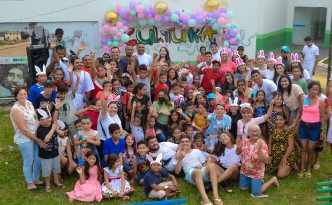 A animação ficou por conta da Equipe de cultura, que organizou uma tarde com muitas brincadeiras, distribuição de ovos de páscoa, bolo e doces para os pequenos.