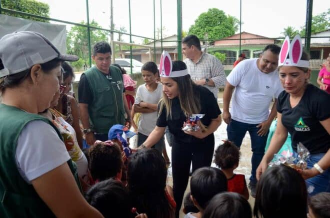 Muita Alegria e diversão marcaram a Ação de Páscoa realizada na manhã de quarta-feira, 13, pela prefeitura de Brasiléia por meio da secretaria de assistência social na quadra do bairro Leonardo Barbosa.