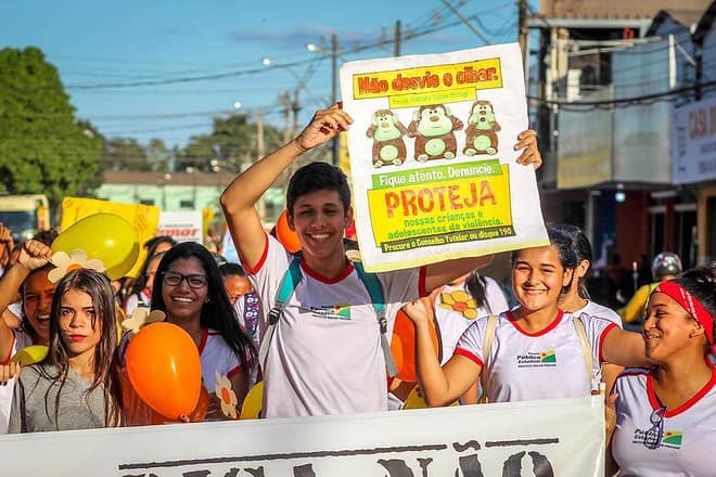 Uma caminhada pela Avenida Manoel Marinho Monte em Brasileia marcou o Dia Nacional de Combate ao Abuso e a Exploração Sexual contra Crianças e Adolescentes, na tarde desta sexta-feira, 17 de Maio. Durante a caminhada, alunos, professores e Secretários Municipais, deram uma lição de amor a todas as menores vítimas desses crimes, e assim pediram, através de Faixas e cartazes maior atenção e união para combater atos de exploração e violência ao mesmo tempo incentivaram a repreensão e a denuncia do Centro de atendimento do governo Federal no Disque 100 .