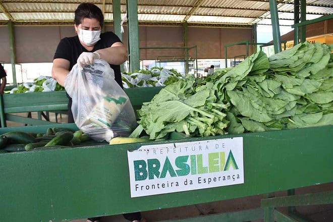 A entrega dos produtos à equipe de Assistência Social é feito pela Cooperativa de produtores agroflorestais e agricultores familiares de Brasileia (COOPERGRÂOS). São produtos da agricultura familiar, feijão, farinha, limão, banana, mandioca, cheiro verde, pepino, alface, pimentinha entre outros alimentos que são entregues às famílias de baixa renda já selecionadas pela Secretaria de Assistência Social.