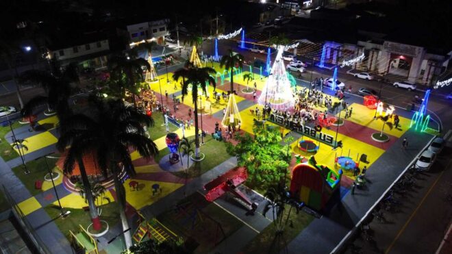 Na noite de sexta-feira 24, a praça Hugo Poli foi palco de um momento encantador, quando a Prefeita Fernanda Hassem e o Vice- Prefeito Carlos Armando oficialmente acenderam as luzes natalinas na cidade.