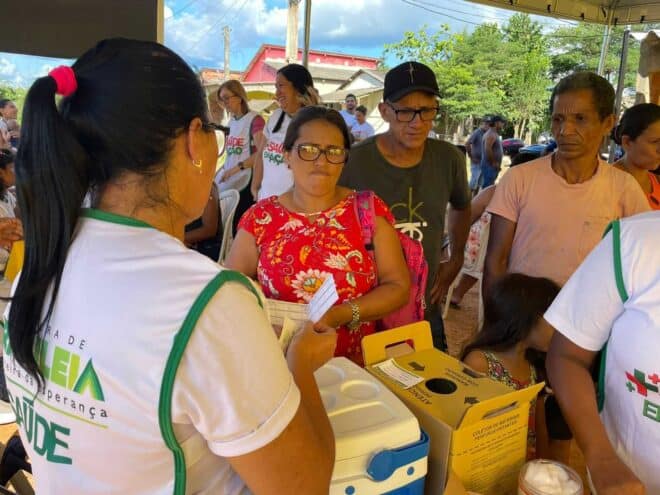 Os moradores do bairro 8 de março (Comunidade Nazaré), distante do centro urbano receberam durante todo o dia desta quinta-feira, 27, vacinação de rotina, pesagem do bolsa família, atendimento médico, odontológico, atendimento psicólogo e testes rápidos e entrega gratuita de medicamentos.