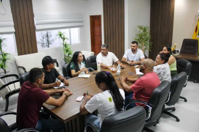 A reunião contou com a presença de Ana Kelly, Secretária Municipal de Agricultura; Jenifer Marcelino, Analista Ambiental; Leilane Granjeiro, Técnica Ambiental; Antônio Francisco, representando a Secretaria Estadual de Agricultura; Romário Campelo, Presidente da AMOPREB; Mário Jorge, Secretário Adjunto de Agricultura; Francisco Lima, Gerente de Ramal; e Lajúscia Cantuário, Assessora de Gabinete.