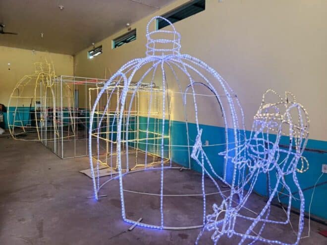 “Nós fazemos um consórcio com os secretários e servidores. Uns têm mais habilidade com solda, outros com montagem e decoração. Usamos nossa própria equipe, que já tem experiência e dedicação com o município. Assim, economizamos na mão de obra e mantemos o envolvimento direto dos servidores na preparação do Natal da cidade”, ressaltou.