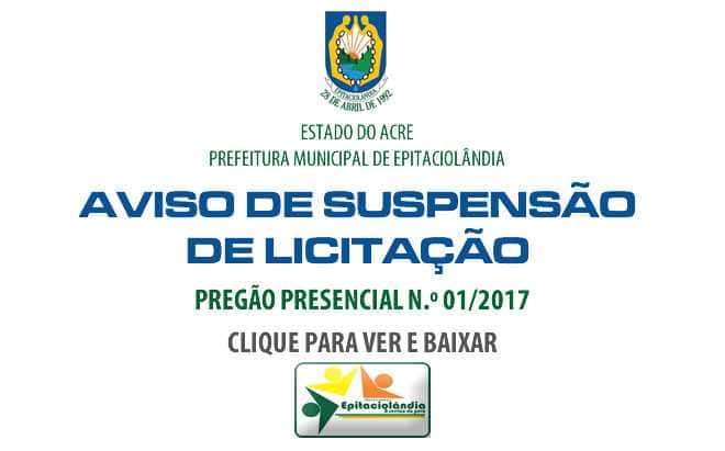 PREFEITURA DE EPITACIOLÂNDIA – AVISO DE SUSPENSÃO DE LICITAÇÃO
