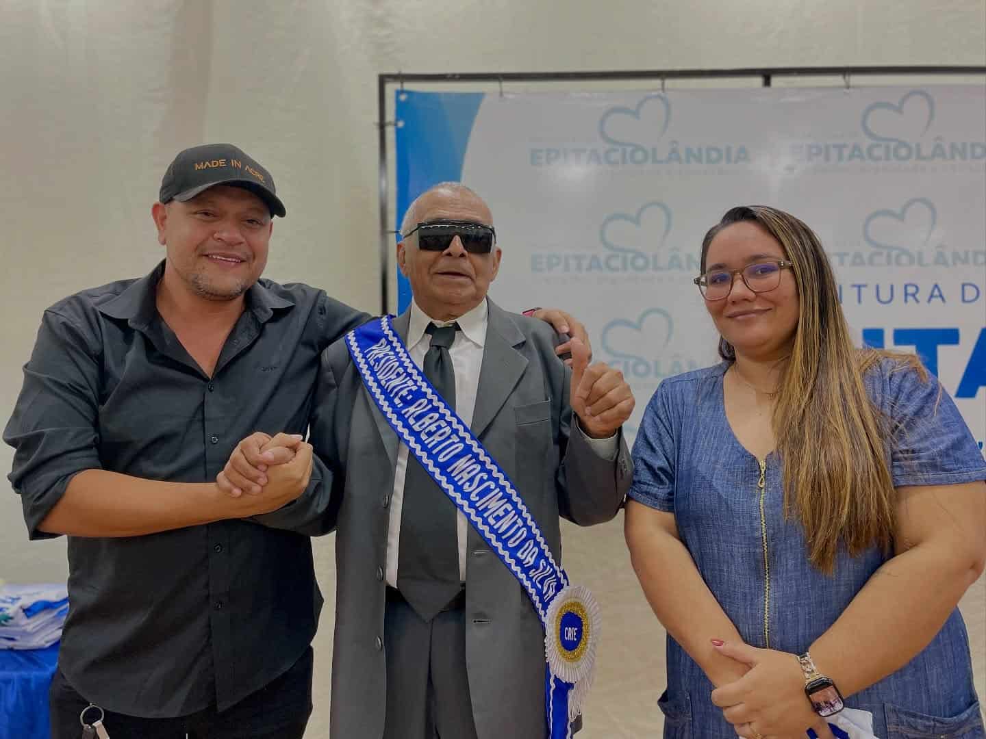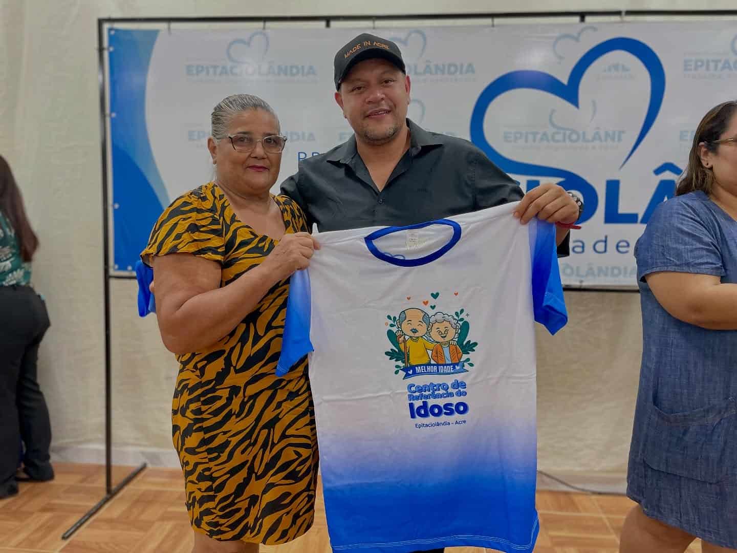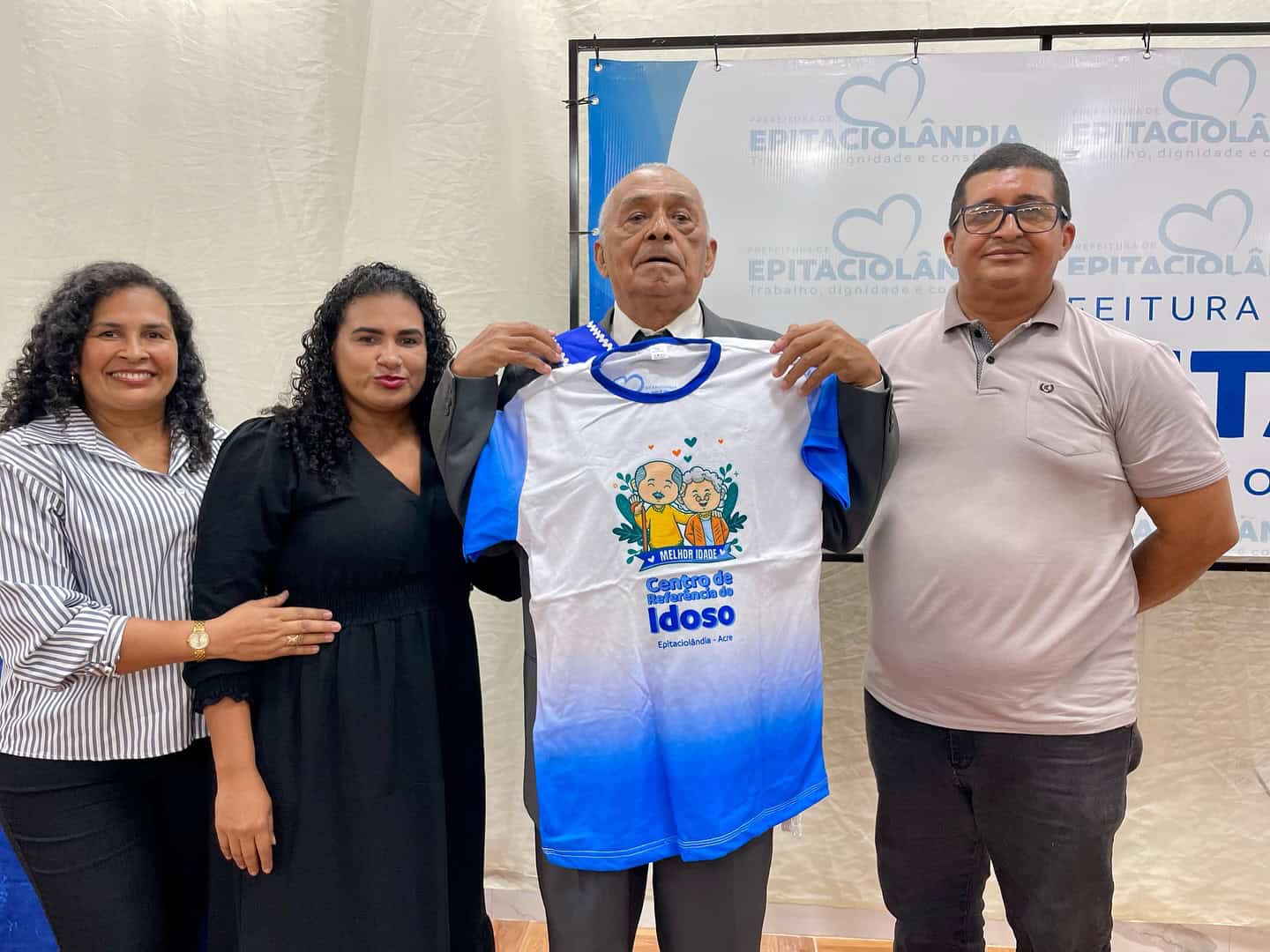 Em um clima de alegria e emoção, a Prefeitura de Epitaciolândia, por meio da Secretaria de Assistência Social e Cidadania, realizou nesta segunda-feira (27) um evento especial em homenagem ao Dia do Idoso. A programação incluiu a entrega do novo fardamento aos participantes do Centro do Idoso e a posse do novo presidente, o senhor Alberto, de 90 anos, figura querida e ativa na comunidade.