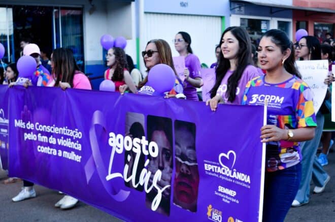 A Prefeitura de Epitaciolândia, por meio da Secretaria Municipal da Mulher, promoveu na tarde desta quinta-feira, 07, uma caminhada pelo centro da cidade em alusão ao Agosto Lilás, mês dedicado à conscientização e ao combate à violência contra a mulher.