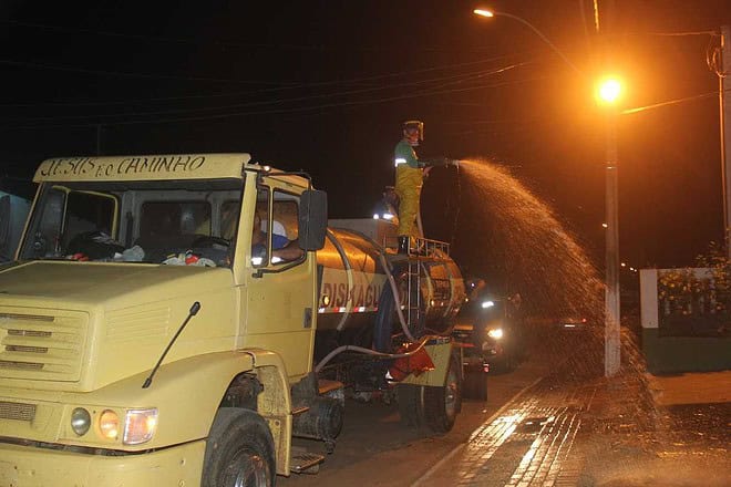 O objetivo é fazer uma lavagem e desinfecção com produto apropriado, para evitar a contaminação, principalmente nos locais de grande circulação de pessoas.