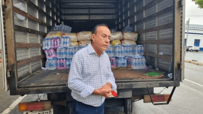 “Nos sacolões que estamos entregando tem 2 pacotes de arroz (dez quilos), 3 pacotes de feijão, três pacotes de açúcar, macarrão, bolacha, óleo… São 27,6kg Mais do que o normal que todo mundo vende por aí que é de treze quilos. Estamos entregando kits limpezas, sacolão, água mineral e temos 20 caminhões-pipas levando água para esses bairros para poder lavar as casas até para beber porque é água potável.”