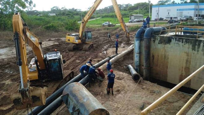 Nessa segunda-feira (11), com a ajuda de 40 colaboradores, em parceria com a Empresa Municipal de Urbanização (Emurb), foi realizado o serviço para desvirar a bomba de captação da ETA II.