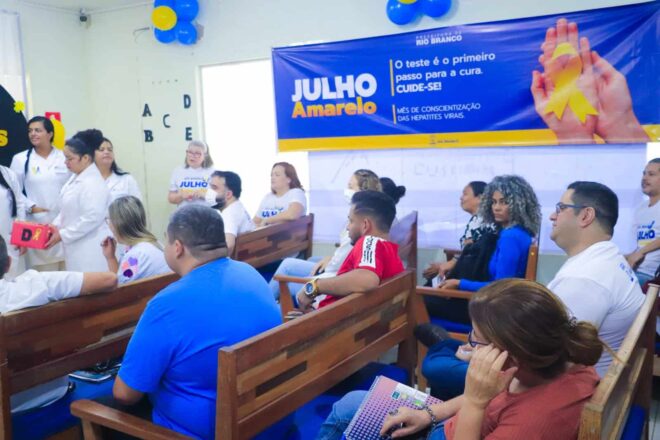 Na manhã desta sexta-feira (19), a Prefeitura de Rio Branco, por meio da Secretaria Municipal de Saúde (Semsa), deu início a campanha “Julho Azul e Amarelo” com o objetivo de conscientizar os homens sobre a importância dos cuidados com a saúde, com foco no Dia Nacional do Homem, comemorado em 15 de julho, e na prevenção das hepatites virais.