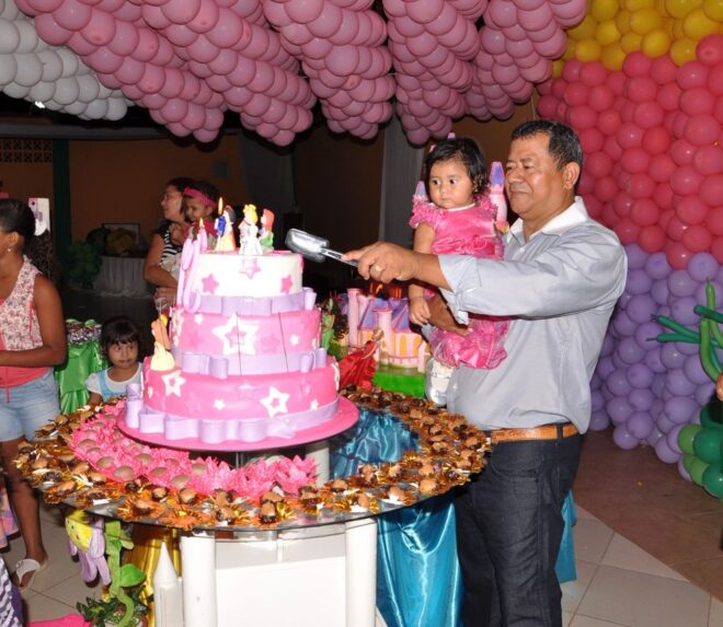 Miriam Hadassa e o pai, Sebastião Costa, comemorando juntos o primeiro ano da menina em Rio Branco. Foto: Arquivo pessoal