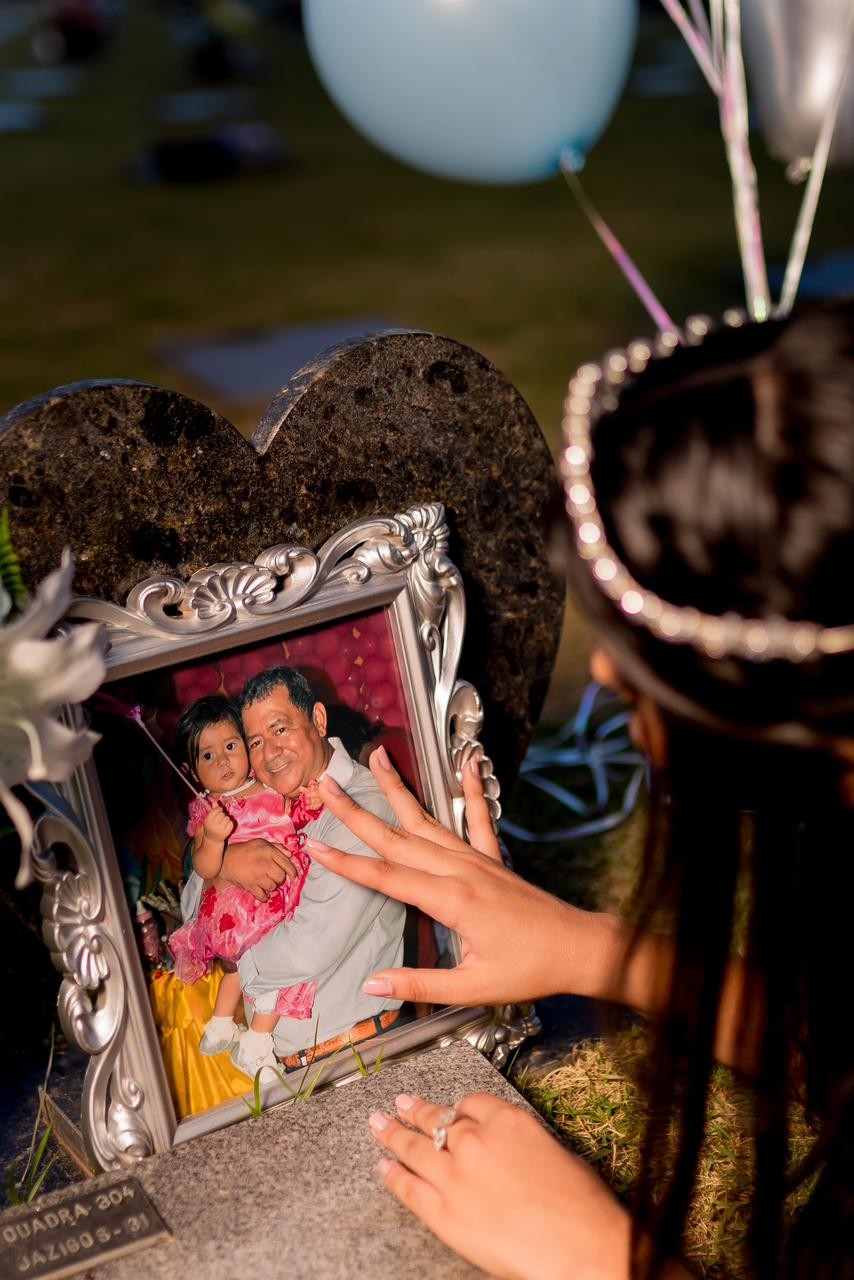 A celebração dos 15 anos da estudante Miriam Hadassa Freitas da Costa ganhou um significado diferente neste ano, em Rio Branco. Para homenagear o pai, que morreu em 2024, a adolescente decidiu fazer um ensaio fotográfico dentro do cemitério onde ele está enterrado.