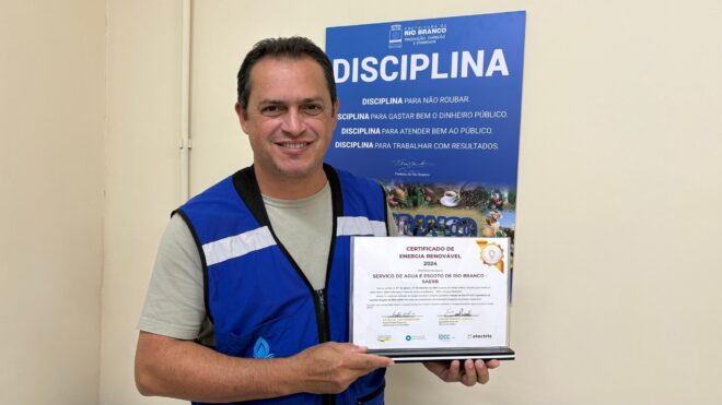 O Prefeitura de Rio Branco, por meio do Serviço de Água e Esgoto de Rio Branco (Saerb) recebeu um certificado de reconhecimento pelo consumo de energia elétrica renovável ao longo do ano de 2024. A iniciativa, que teve início em 1º de janeiro e seguiu até 31 de dezembro de 2024, envolveu a migração para o Mercado Livre de Energia e a contratação de eletricidade proveniente de fontes limpas, como Usinas Eólicas, Solares, Biomassa e Pequenas Centrais Hidrelétricas.