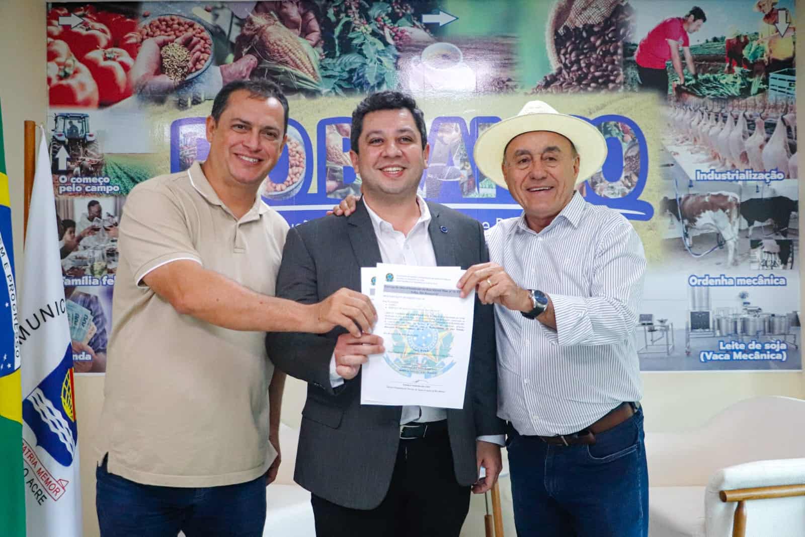 A assinatura do termo de cessão ocorreu na tarde desta sexta-feira (20), no gabinete da Prefeitura, com a presença do prefeito Tião Bocalom; do superintendente do Patrimônio da União no Acre (SPU), Tiago Mourão; e do diretor-presidente do Saerb, Enoque Pereira.
