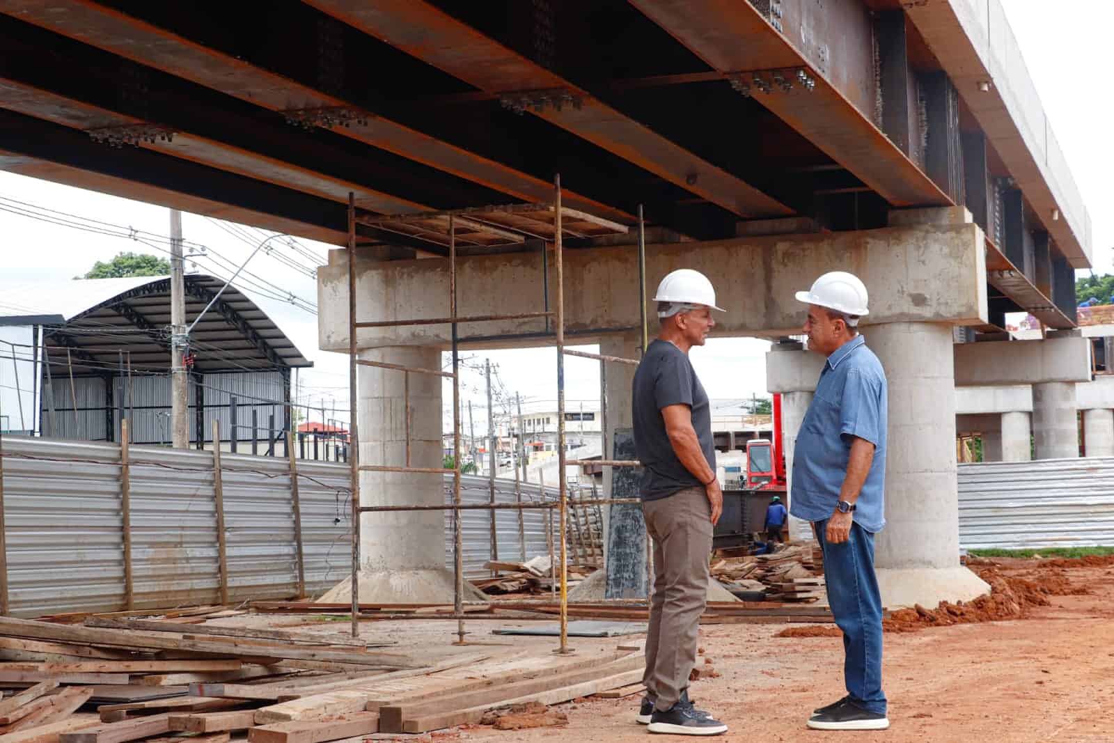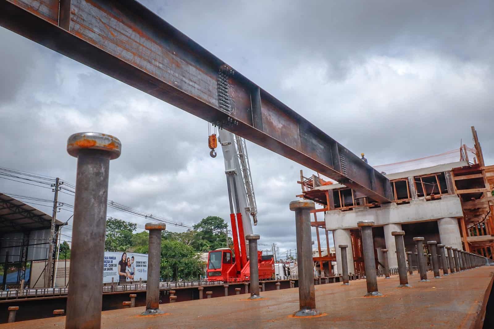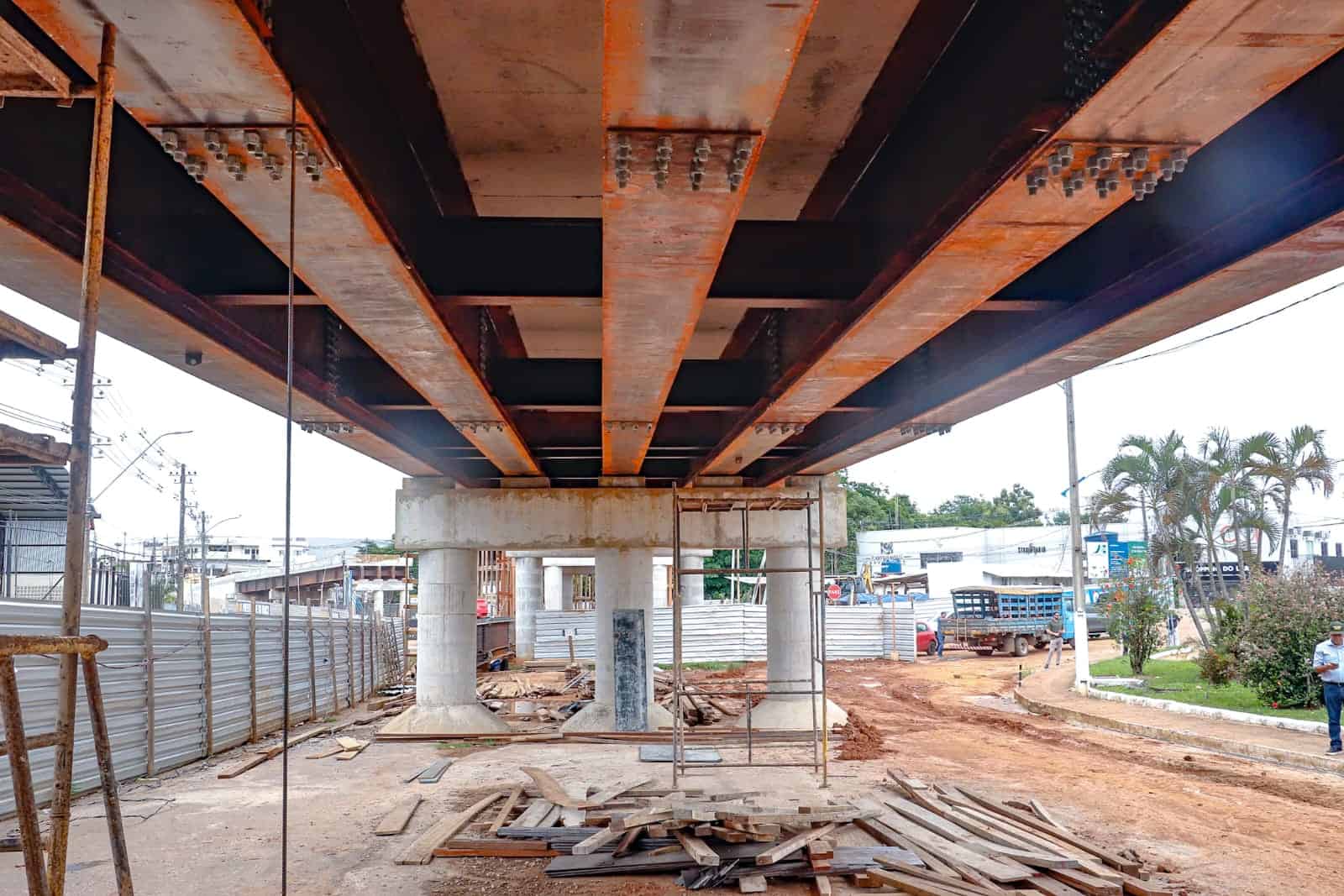 As duas estruturas seguem em ritmo acelerado. O Novo Mercado Municipal já alcançou 50% de execução, enquanto o Elevado da AABB, com 278 metros de extensão, está praticamente 80% concluído, restando apenas dois lances estruturais para finalização. Para o prefeito, tratam-se de obras que marcarão a história da capital e do Acre.
