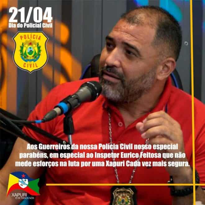 A homenagem foi divulgada em redes sociais nesta sexta-feira (21), pela prefeitura do município de Xapuri, oferecida especialmente na pessoa do Inspetor Investigador Eurico Feitosa, que está atuando por três décadas prestando serviços pra sociedade de Xapuri, como Policial Civil do Estado do Acre.