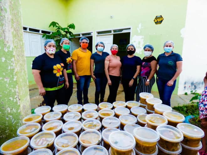 A prefeitura tem feito regularmente a entrega de sopa nos bairros e no Centro de Referência e Assistência Social, segundo informou Roseli Lopes, Coordenadora do CRAS, hoje foram distribuídos cerca de 160 potes sendo até 05 unidades por cada família.