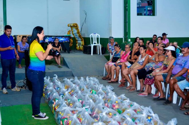 O ato de entrega das cestas básicas aconteceu no pátio da Escola José Hassem Hall filho, e contou com poio de servidores da prefeitura, voluntários e pessoal do Iteracre.