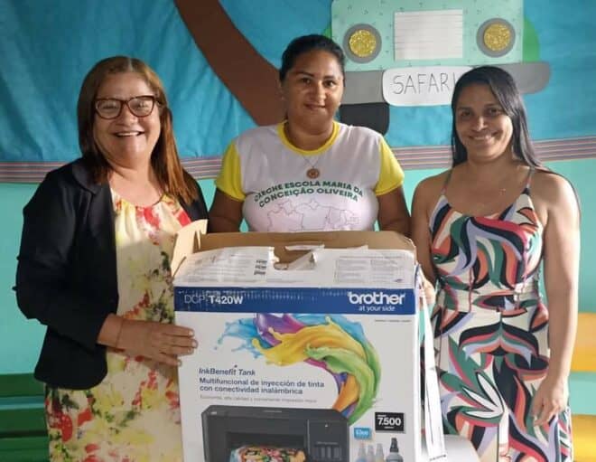 Nesta quarta-feira (17) foram entregues impressoras para as Escolas Infantis Sebastião Brandão do Nascimento e Maria da Conceição de Oliveira.