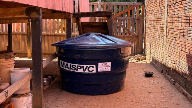 “Aqui moram oito pessoas e, como a caixa que tínhamos não era suficiente para todos, usávamos água apenas para o banho. O restante da água que consumíamos era comprada. Agora, com uma caixa maior e em boas condições, conseguiremos fazer um uso mais adequado.”